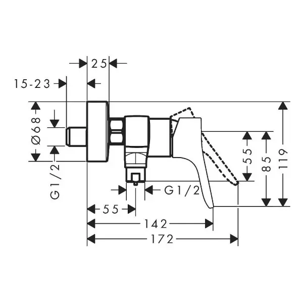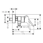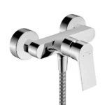 Zidna enoročna mešalna armatura za prho iz serije Zebris, priznanega nemškega proizvajalca Hansgrohe. Eleganten in minimalističen dizajn s čistimi linijami, v kromirani izvedbi.