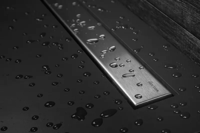 Kopalniška talna kanaleta za prho, brez vidnega okvirja, s pokrovom iz nerjavečega jekla. Za moderen, eleganten ter nevsiljiv videz, ki se prilega vsakemu slogu dekorja kopalnice.