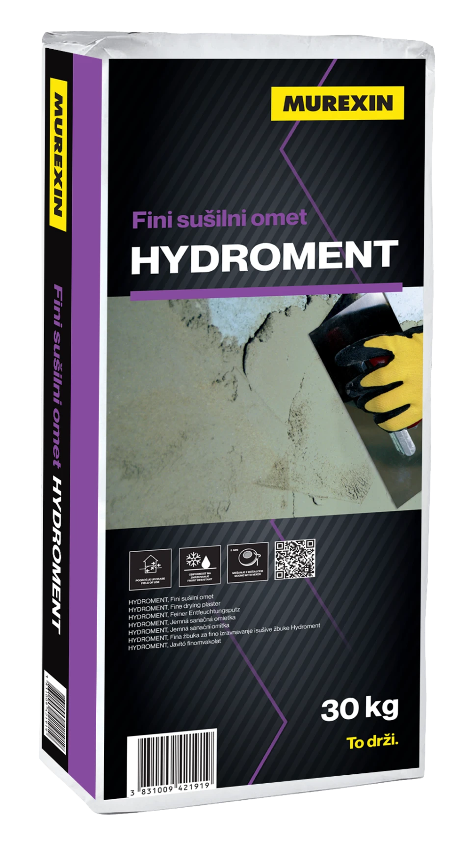 Murexin Hydroment fini sušilni omet je zaključni sloj v sanacijskem sistemu Hydroment, posebej razvit za zidove, ki so obremenjeni z vlago in raztopljenimi solmi. Nanaša se na grobi sanacijski omet in služi kot fina površinska obdelava, ki hkrati omogoča paroprepustnost in pospešeno sušenje zidne konstrukcije.