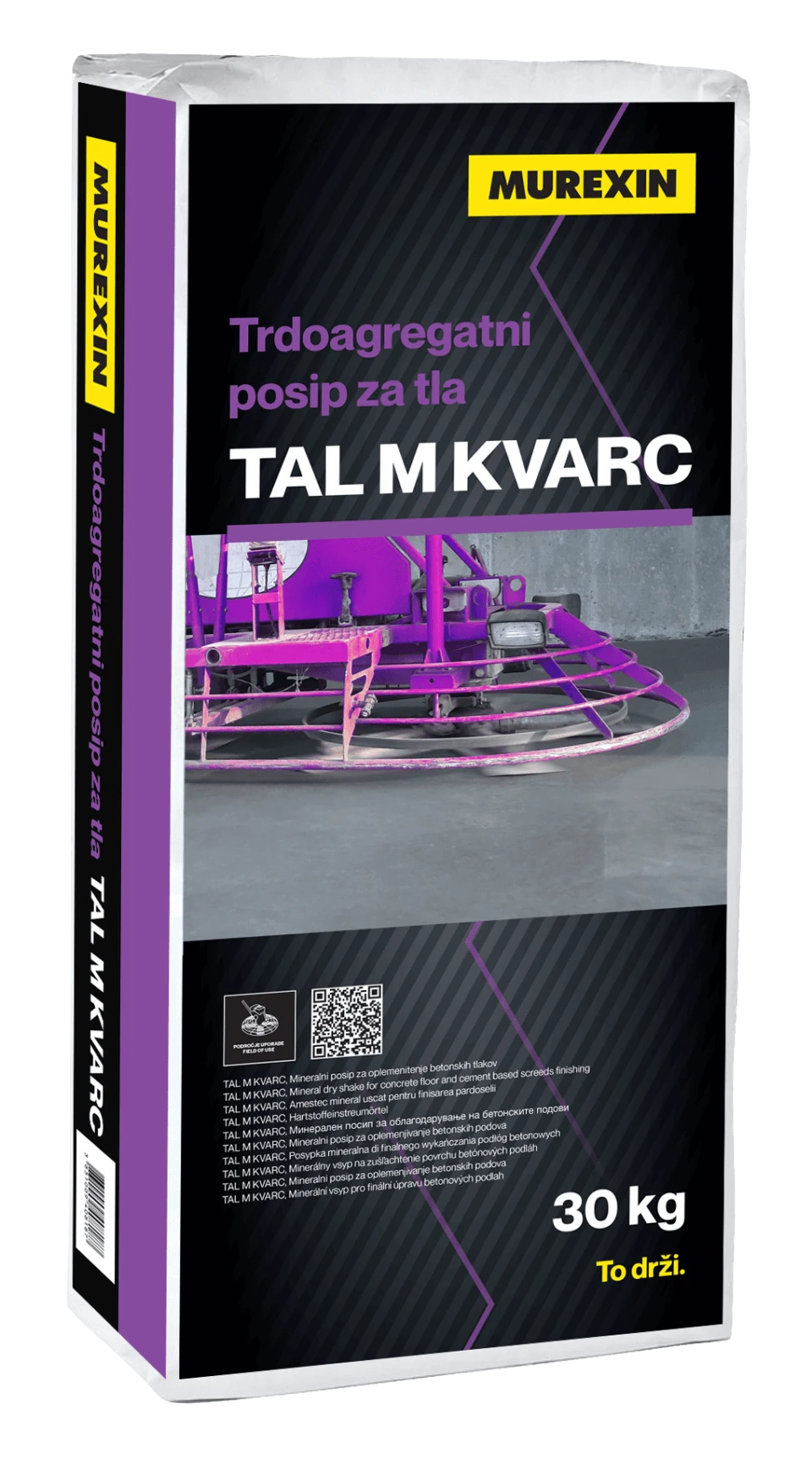 Murexin TAL M Kvarc – mineralni posip za oplemenitenje betonskih tlakov je specialni dodatek za površinsko utrjevanje betona. Razvit je za industrijske in druge površine, kjer je potrebna visoka mehanska odpornost, večja nosilnost ter dolga življenjska doba tal.