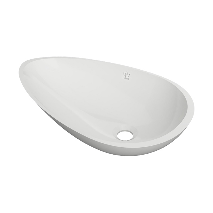 Trendovski nadpultni umivalnik Lotus, čistih linij, v obliki kaplje. V celoti izdelan iz umetnega kamna (liti marmor). Krasi ga estetsko dovršen dizajn, hkrati pa zaradi materiala nudi tudi prijeten občutek na otip.