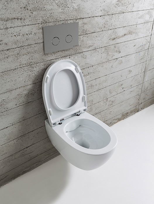 Viseča WC školjka brez notranjega roba za stensko montažo. Posebna lastnost je Ceraslide glazura, ki skupaj z antibakterijskim premazom daje dodaten sijaj, trdnost in higieno.