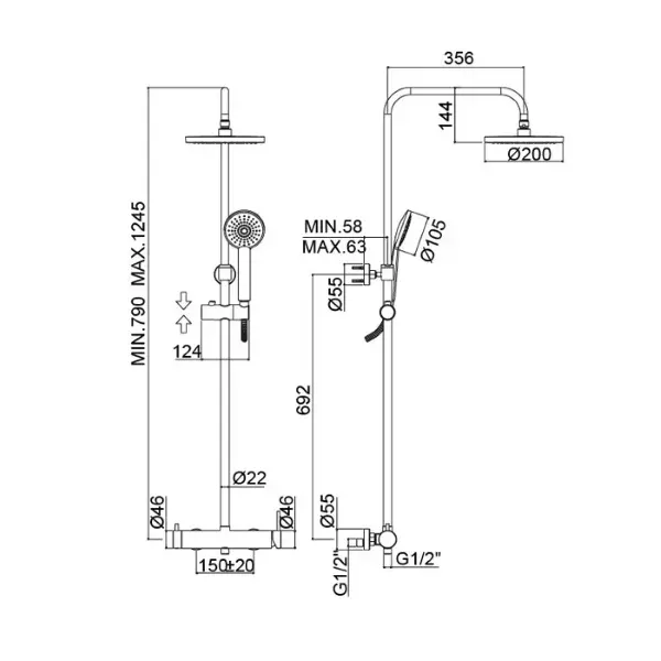 TUŠ SET NADGLAVNI MICRO ZCOL644CR, PAFFONI
